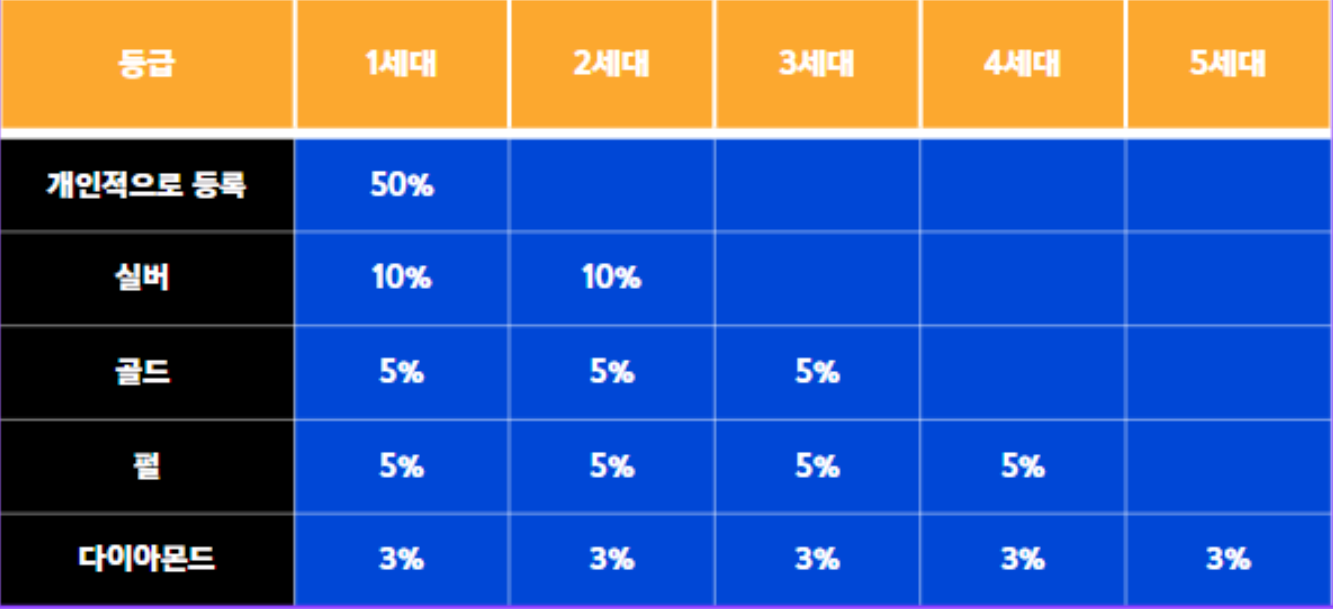 Additionally, as you advance to higher levels, you will continue to receive 50% of the SV earned by your directly recruited members, and you will also have the opportunity to earn additional rewards from members recruited within your own generations.